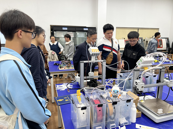 在导师与学员见面环节,全体人员按学科方向分组开展深度交流,现场气氛热烈。通过面对面的坦诚沟通,师生间快速增进了解、凝聚共识,顺利确定一对一精准对接关系,为后续培养工作的有序开展筑牢坚实基础。座谈交流结束后,导师们带领学员走进广西柳州水生动物疫病防控检测中心,以及广西智能汽车多维信息融合重点实验室、微电子与先进材料产业学院实验室、广西教育系统网络安全监测中心等专业实验室,实地参观先进科研设备,细致讲解实验研究内容与科研工作流程,让学员们近距离感受各领域浓厚的科研氛围与严谨的治学精神,直观触摸不同学科科学研究的独特魅力,进一步激发了大家探索科学奥秘、投身科创实践的热情与动力。