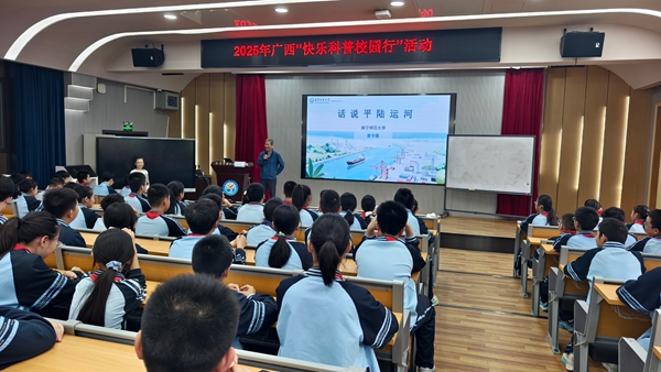 12月2日,2025年广西“大手拉小手,科普报告希望行”活动在南宁市第十四中学顺利举办。活动特邀广西未成年人科普演讲团专家曾令锋教授进校,为师生作了题为《话说平陆运河》的科普报告。