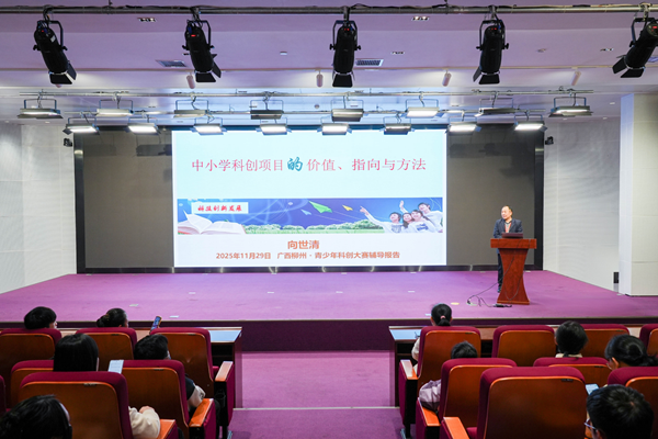 二是举办了专题指导讲座。大赛组委会特别邀请国内知名科创教育专家向世清教授,为参赛选手及科技辅导员带来《科创大赛项目的优化及提升》专题讲座。讲座中,向教授围绕中小学科创项目的核心价值、选题方向及实操方法展开深度解析,为在场师生提供了精准高效的指导。整场讲座干货满满、指导性强,赢得了现场师生的阵阵热烈掌声。