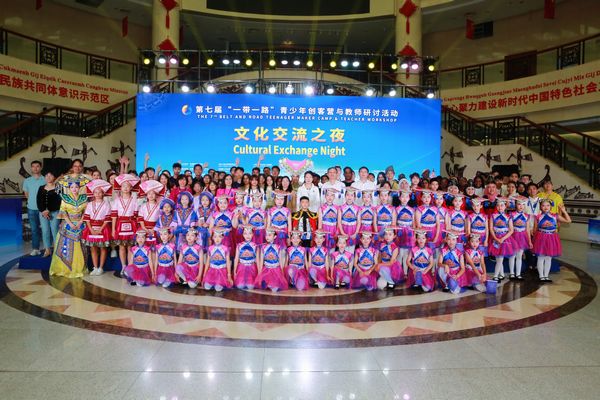 艺术文化交流之夜活动作为第七届“一带一路”青少年创客营与教师营研讨活动广西主场活动之一,于11月8日晚在广西民族村举办。来自中国、马来西亚、泰国、罗马尼亚、津巴布韦等13个共建“一带一路”国家的师生代表等300多人相聚一堂,参与艺术文化交流,共同演绎了一场精彩绝伦的视听盛宴。中国科协青少年科技中心主任辛兵,广西科协党组书记、副主席纳翔,广西科协党组成员、副主席黎宁等领导嘉宾出席了活动。