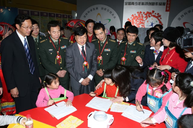 翟志刚、刘伯明、景海鹏一行观看了广西科技馆一周年图片展和全国青少年科技创新作品巡展在广西科技馆的首场展出,并到各层展厅进行参观,受到了现场观众的热烈欢迎。在全国青少年科技创新作品巡展现场蜡染展项前,航天英雄饶有兴致地与小朋友们互动体验。科技馆四层展厅中展示的登月航天服、绕月飞行模拟器等展项展品尤其受到几位英雄的关注,翟志刚等一边与工作人员交流,一边兴致勃勃地与现场观众合影留念。