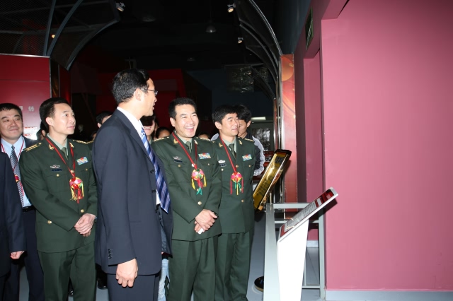航天英雄翟志刚等在广西自治区副主席陈章良等陪同下观看展厅