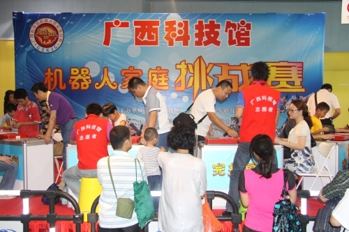 传承科学精神,放飞青春梦想。紧密围绕2010年全国科技活动周广西系列活动及其“创新”主题,2010年5月15日,由广西科协、广西教育厅主办,广西科技馆、广西青少年科技中心承办的“2010年广西青少年机器人竞赛”在广西科技馆展览中心成功举办;同期,广西科技馆机器人家庭挑战赛决赛也顺利举行。